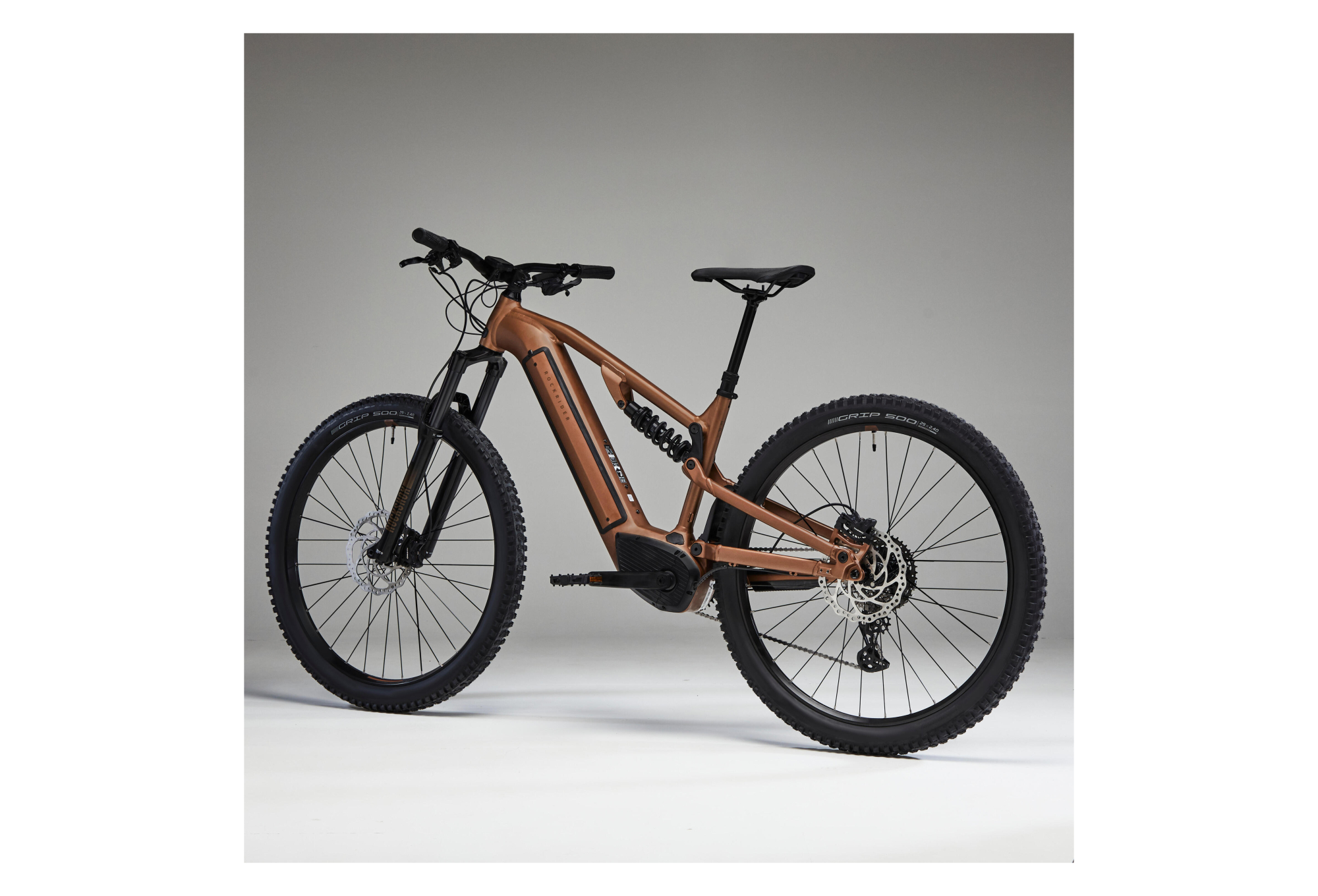 Rockrider E-Expl 700 S Marron très robuste : transmission, suspensions et freinage ont été choisis pour un maximum de longévité et simplicité d’entretien.
